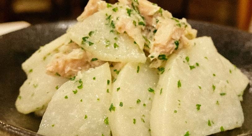 シャキシャキの大根にツナの旨み、青のりの香りが加わってとても風味豊かな一品でした。火を使わずにすぐ作れるので、あと一品ほしいときにも便利。マヨネーズのまろやかさと青のりの磯の香りがよく合い、さっぱりしながらも満足感のある副菜でした。