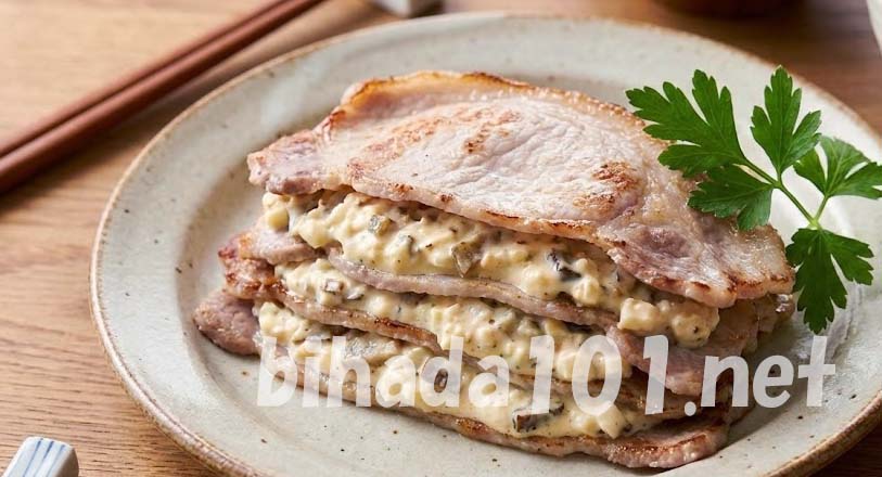 いぶりがっこタルタルの豚肉のミルフィーユ風レシピ