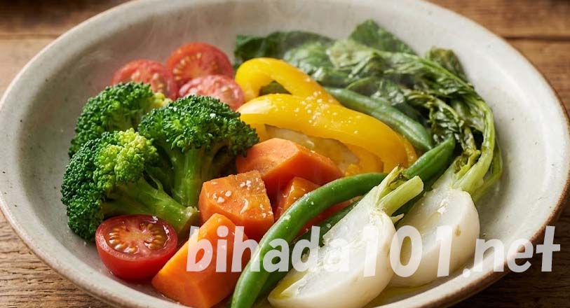 野菜の鮮やかな色がそのまま残っていて、食卓がとても華やかになります!2分という短時間のおかげで、野菜がクタクタにならず、素材そのものの瑞々しさと歯ごたえがしっかり楽しめました。オリーブオイルと塩だけなのに、蒸された野菜の甘みがギュッと濃縮されていて、これだけで立派なご馳走になります。