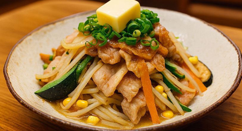 まるでラーメンのスープをそのまま具材に絡めたようなコクと香ばしさ!味噌とバターの風味が食欲を刺激し、野菜もたっぷり取れる満足感のある一皿です。ご飯との相性も抜群で、がっつり食べたい日にぴったり。