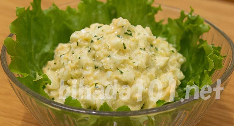 - 加熱後の卵をみじん切りにし、再び耐熱容器に戻します。