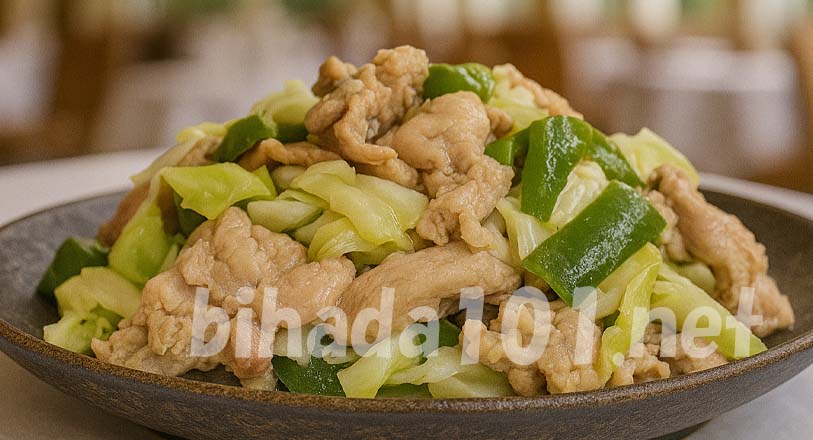 - カットしたピーマンとキャベツを加え、強火で汁気がなくなるまで炒めたら完成です。