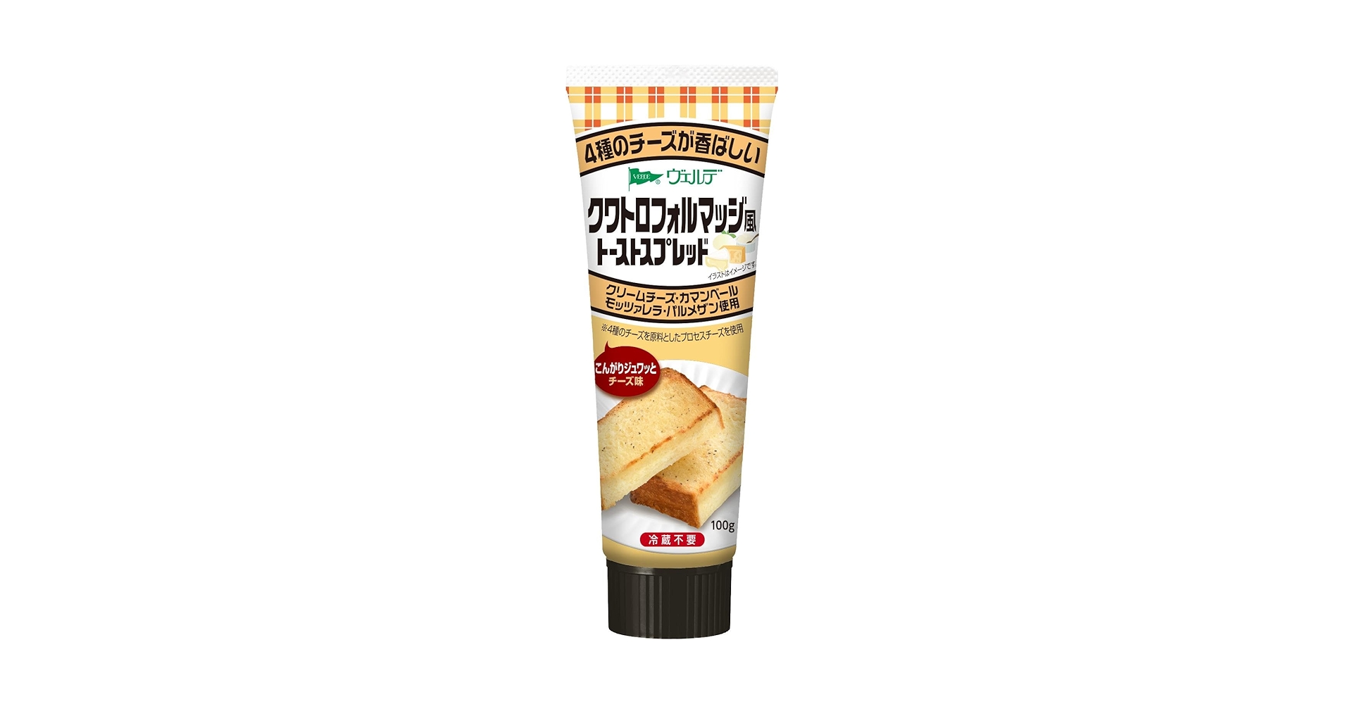 続いて普通のチーズトーストに戻れないとして紹介されていたのが8月に発売のクワトロフォルマッジ風トーストスプレッド。塗って焼くだけで普段の食パンが本格的なチーズピザになります。