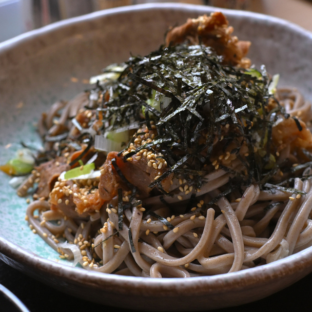 続いてやってきたのは「立ち食い蕎麦噛む。」。今年5月にオープンした蕎麦屋さん。こちらの肉盛りつけ蕎麦(980円)は麺の太さが通常の2倍くらいあります。噛めば噛むほど蕎麦の香りが広がるとのこと。