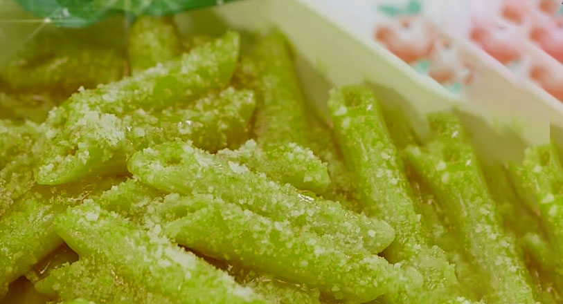- 茹であがったパスタを冷水に取り、水に対して1%弱の塩を加えてしめます。