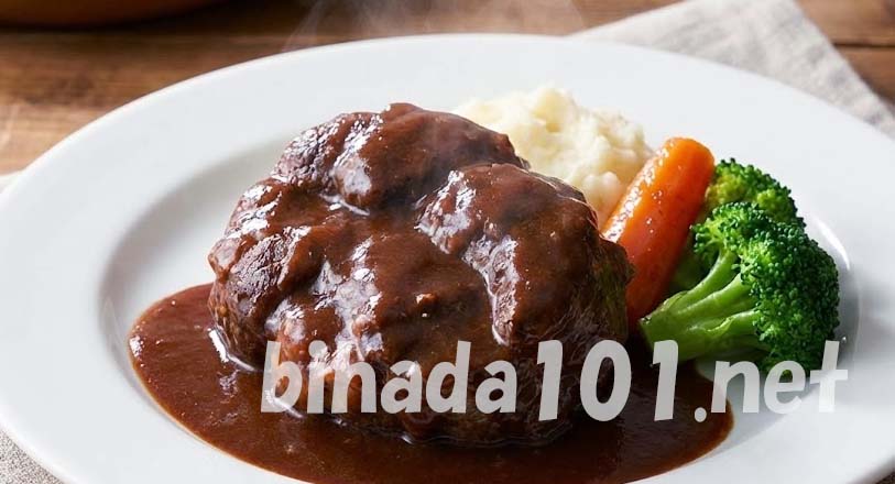 - ミキサーにかけた野菜を鍋に戻してさらに2時間煮込み、盛り付けた牛肉にかけたら完成です。