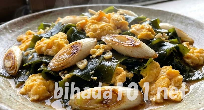 わかめと卵ネギ炒め定食レシピ