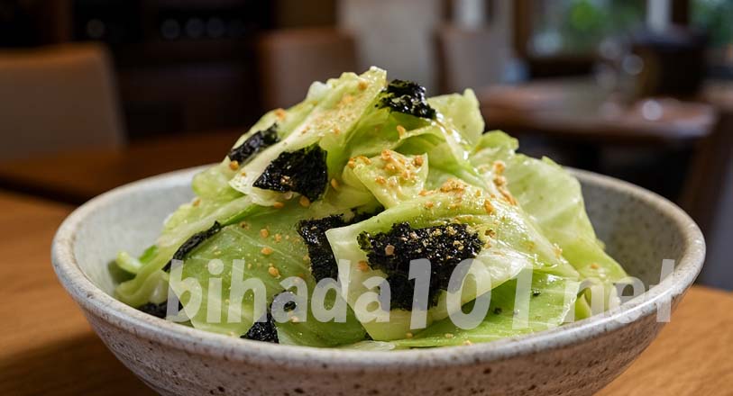 とにかく簡単で、スピード感のある“最初の一品”にぴったりのレシピです。にんにくとごま油の香りが効いていて、キャベツがモリモリ食べられます。のりがしんなりして旨みをまとわせてくれるので、おつまみにも副菜にも大活躍です。