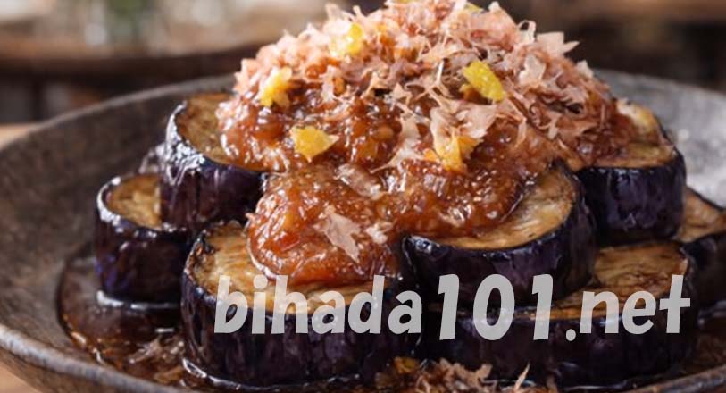 - なすがとろとろになったら器に盛り、田楽みそをかけて、ゆずの皮とかつお節をのせて完成です。