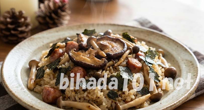 バターの濃厚なコクと、きのこの香ばしさが口いっぱいに広がる贅沢なピラフです。最初から一緒に炊き込むのではなく、後から「焼き色をつけたきのこ」を混ぜることで、きのこの食感と旨味が際立っていて驚きました!ソーセージの塩気と、最後に散らすのりの磯の香りが絶妙なアクセントになり、子供から大人まで喜ばれる優しい味わいです。
