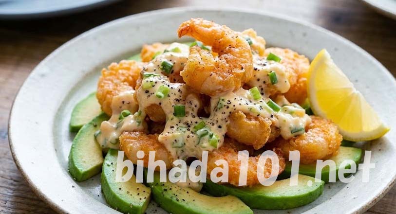 ぷりぷりのえびに濃厚なマヨソースが絡んで、文句なしの美味しさです!アボカドと一緒に食べることでクリーミーさが際立ち、レモンの酸味で最後までさっぱりといただけました。ごま油の香ばしさがアクセントになっていて、お酒のおつまみにも、新年のパーティーメニューにもぴったりな華やかな一品ですね。