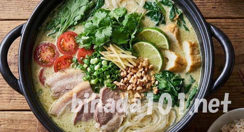 - ココナッツミルク、豆乳、ナンプラーを加え、沸騰させないように注意しながら温めます。