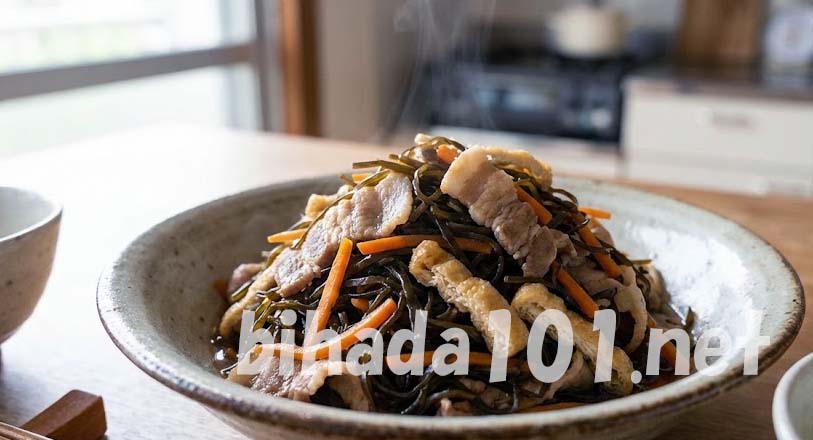 豚肉を下ゆでするひと手間で、脂っこさが抜けてとても食べやすく仕上がります。昆布の戻し汁と豚のゆで汁の両方を使うことで、だしを入れなくても深いコクと旨味がしっかり感じられるのが嬉しいですね。ご飯のおかずにも、お酒のお供にもぴったりの優しい味わいです。