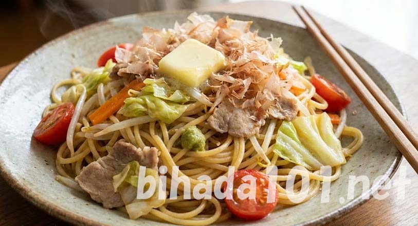 白だしの旨みとわさびのピリッとしたアクセントが効いた、和洋折衷の新感覚パスタでした。バターとかつお節が絡むことで風味が豊かになり、野菜のシャキシャキ感も楽しめました。手軽に作れて、食べ応えのある一品でした。